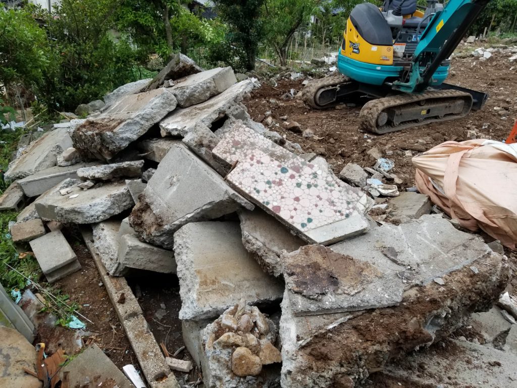 建物の解体が終わり、基礎やコンクリート土間の解体へと進みます。